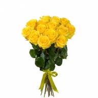 Яркий, но одновременно мягкий букет из 15 желтых роз. Вопреки распространенному предрассудку о том, что желтые розы символизируют измену, разлуку или ревность, это совершенно не так. Желтые розы на языке цветов означают радость встречи, заботу и дружескую привязанность. Также эти цветы несут особую энергетику, дарят ощущение свободы и легкости.
